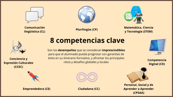 A partir de esta Recomendación, la LOMLOE ha incorporado el concepto de competencia clave como todo aquel desempeño que se considera imprescindible para que el alumnado pueda progresar con garantías de éxito en su itinerario formativo y afrontar los principales retos y desafíos globales y locales.