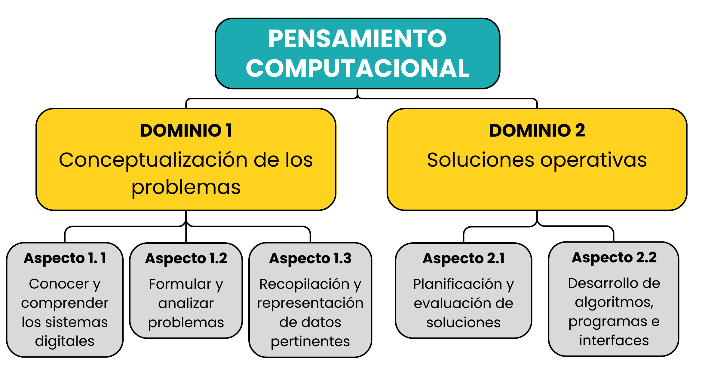 Figura 1. Dominios y aspectos del constructo PC del Marco de evaluación ICILS 2023.